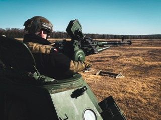 Artylerzyści ćwiczą strzelanie z karabinów maszynowych